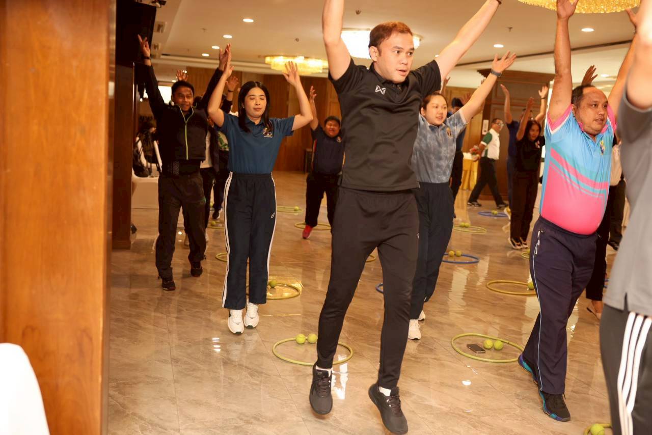 กิจกรรมที่ ๑ อบรมเชิงปฏิบัติการผู้นำการจัดกิจกรรมทางกายในการส่งเสริมสุขภาพและการป้องกันการหกล้มสำหรับผู้สูงอายุไทย ระหว่างวันที่ ๓๐ มีนาคม - ๑ เมษายน ๒๕๖๙