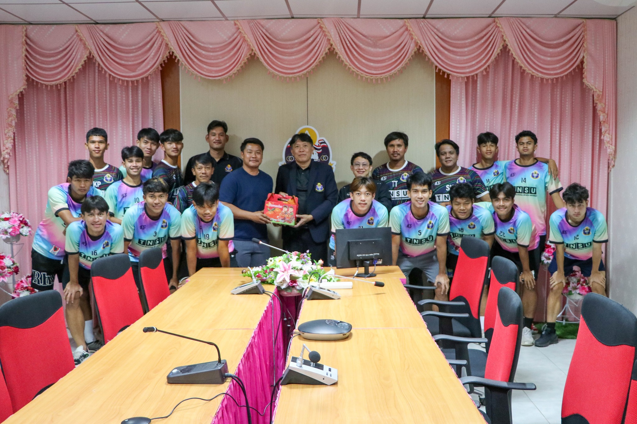 เมื่อวันที่ 7 มกราคม 2569 ทีมฟุตบอลชาย มหาวิทยาลัยการกีฬาแห่งชาติ ได้เข้าพบ ดร.วิเชียร วงค์วัน รองอธิการบดีมหาวิทยาลัยการกีฬาแห่งชาติ ประจำวิทยาเขตลำปาง เพื่อรายงานความก้าวหน้าและขอคำแนะนำในการดำเนินงาน ในการนี้ ด้วยมหาวิทยาลัยการกีฬาแห่งชาติ วิทยาเขตศรีสะเกษ ได้รับมอบหมายให้ดำเนินการจัดเตรียมทีมฟุตบอลชาย มหาวิทยาลัยการกีฬาแห่งชาติ เพื่อเข้าร่วมการแข่งขันกีฬามหาวิทยาลัยแห่งประเทศไทย ครั้งที่ 51 “อินทนิลเกมส์” ซึ่งกำหนดจัดขึ้นระหว่างวันที่ 9–19 มกราคม 2569 ณ มหาวิทยาลัยแม่โจ้ จังหวัดเชียงใหม่