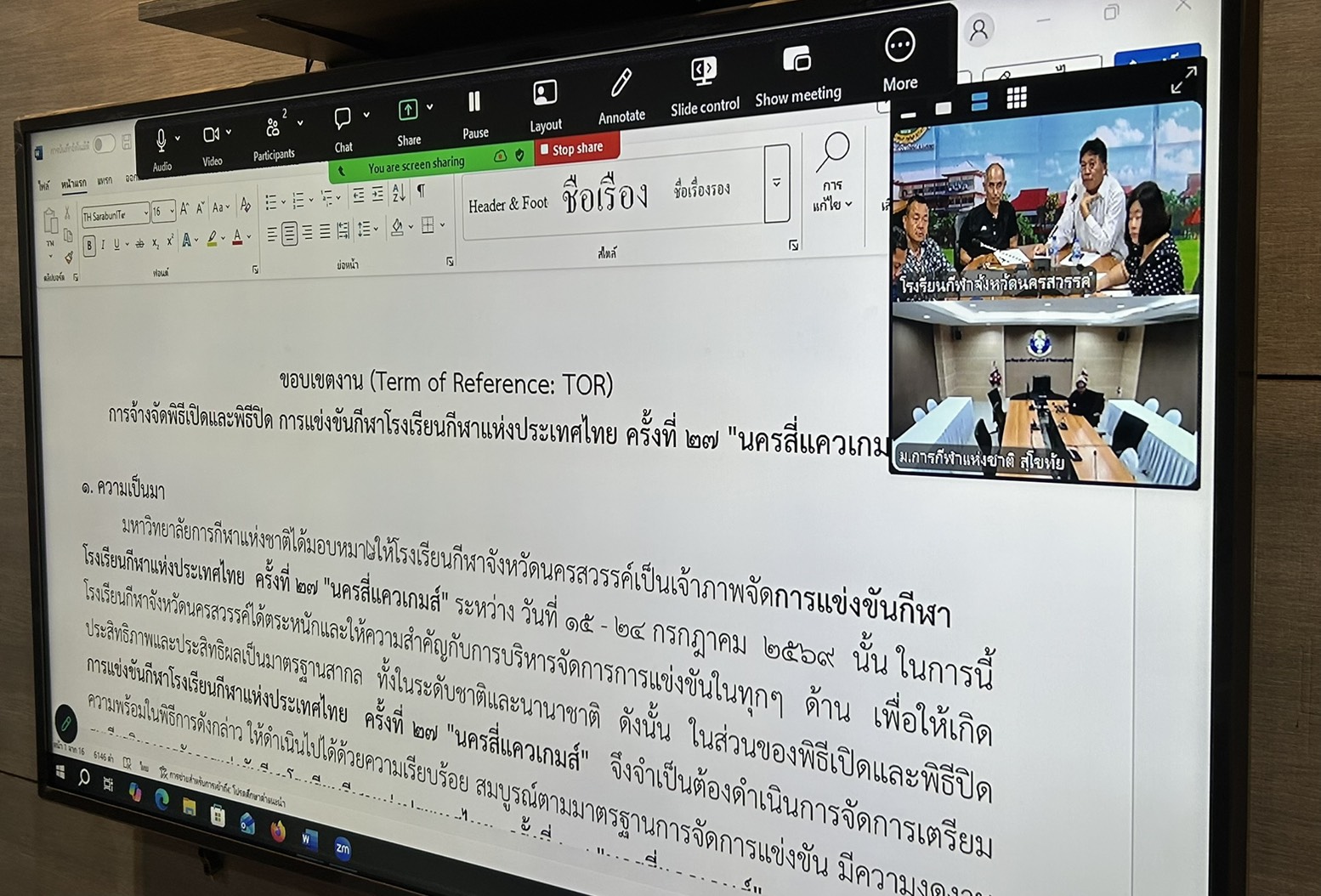 เข้าร่วมประชุมพิจารณา(ร่าง)ระเบียบและกำหนดขอบเขตการดำเนินงานพิธีเปิด-พิธีปิด การแข่งขันกีฬาโรงเรียนกีฬาแห่งประเทศไทย ครั้งที่ 27 “นครสี่แควเกมส์”