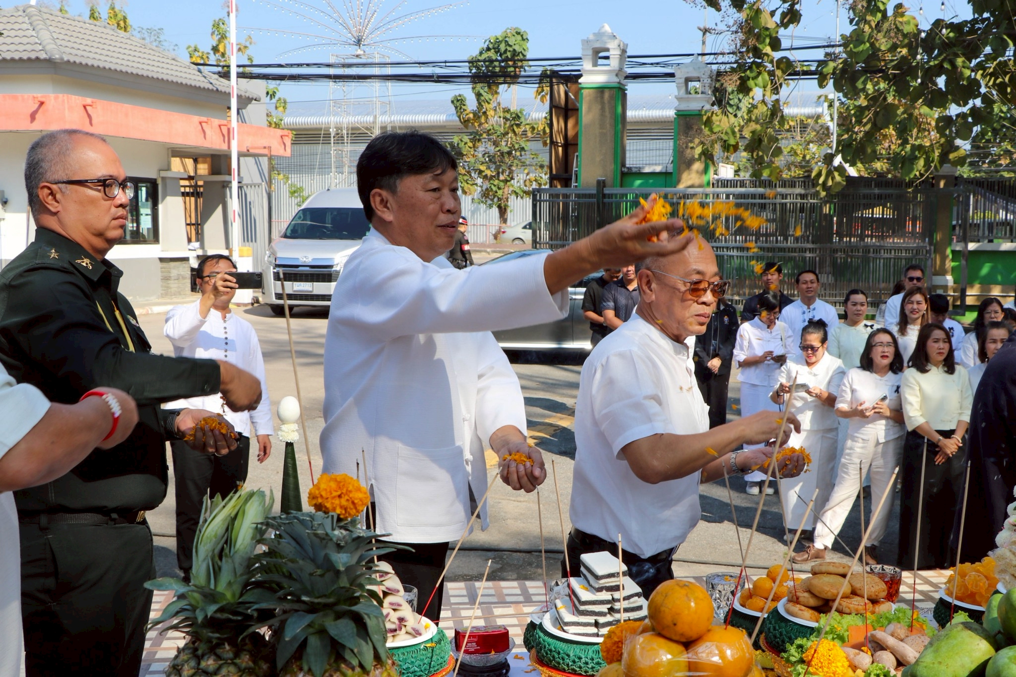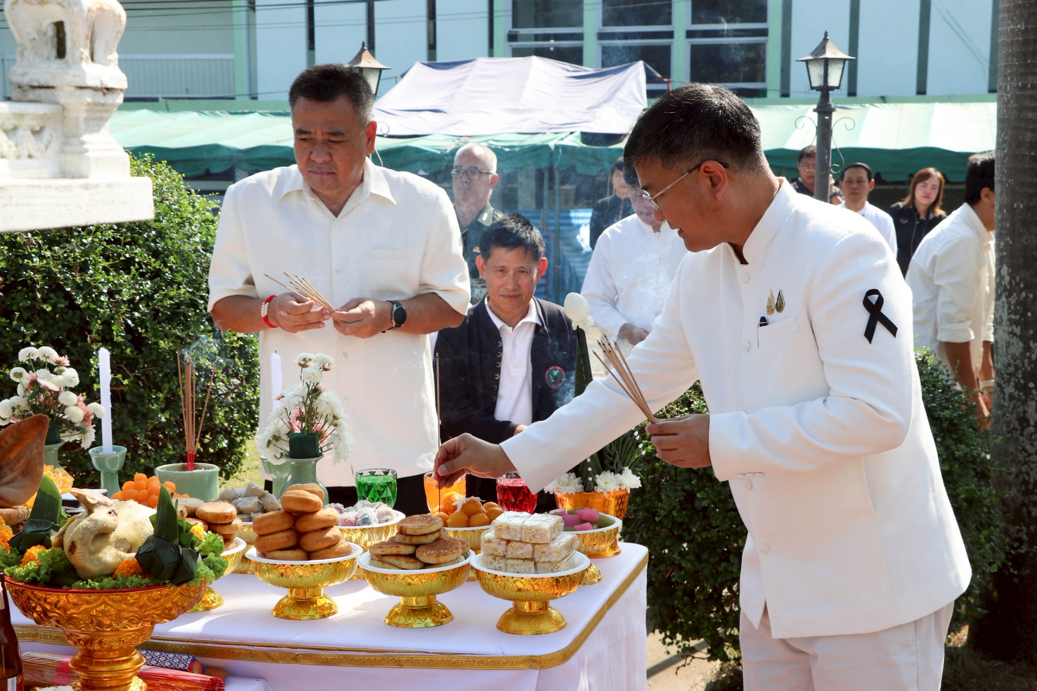 วันที่ 9 ธันวาคม 2568 ดร.วิเชียร วงค์วัน รองอธิการบดีมหาวิทยาลัยการกีฬาแห่งชาติ ประจำวิทยาเขตลำปาง ให้การต้อนรับ นายพัชระ สิมะเสถียร รองผู้ว่าราชการจังหวัดลำปาง ในโอกาสเดินทางมาเป็นประธานนำประกอบพิธีบวงสรวงสิ่งศักดิ์สิทธิ์คู่บ้านคู่เมืองนครลำปาง ณ มหาวิทยาลัยการกีฬาแห่งชาติ วิทยาเขตลำปาง พิธีดังกล่าวจัดขึ้นเพื่อความเป็นสิริมงคล และเสริมสร้างขวัญกำลังใจแก่หน่วยงานและผู้มีส่วนเกี่ยวข้องในการดำเนินงานของจังหวัด โดยมีคณะผู้บริหาร หัวหน้าส่วนราชการ บุคลากร และประชาชน เพื่อความเป็นสิริมงคล สร้างขวัญกำลังใจ ในการจัดงานกาชาดจังหวัดลำปาง ให้ผ่านไปด้วยดี