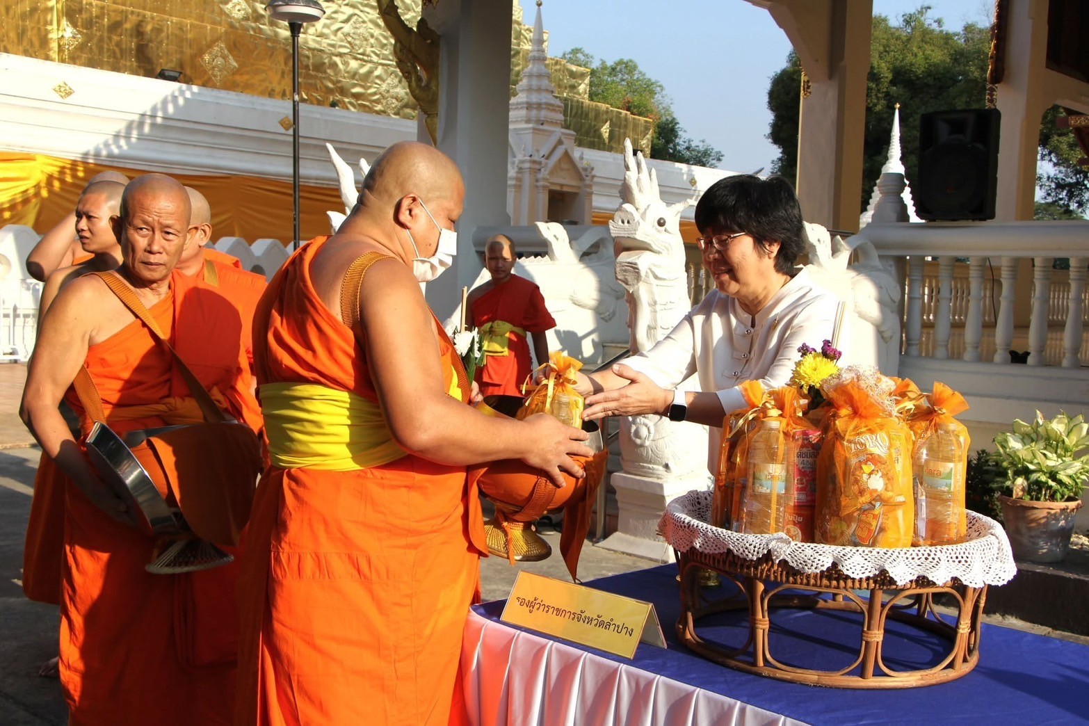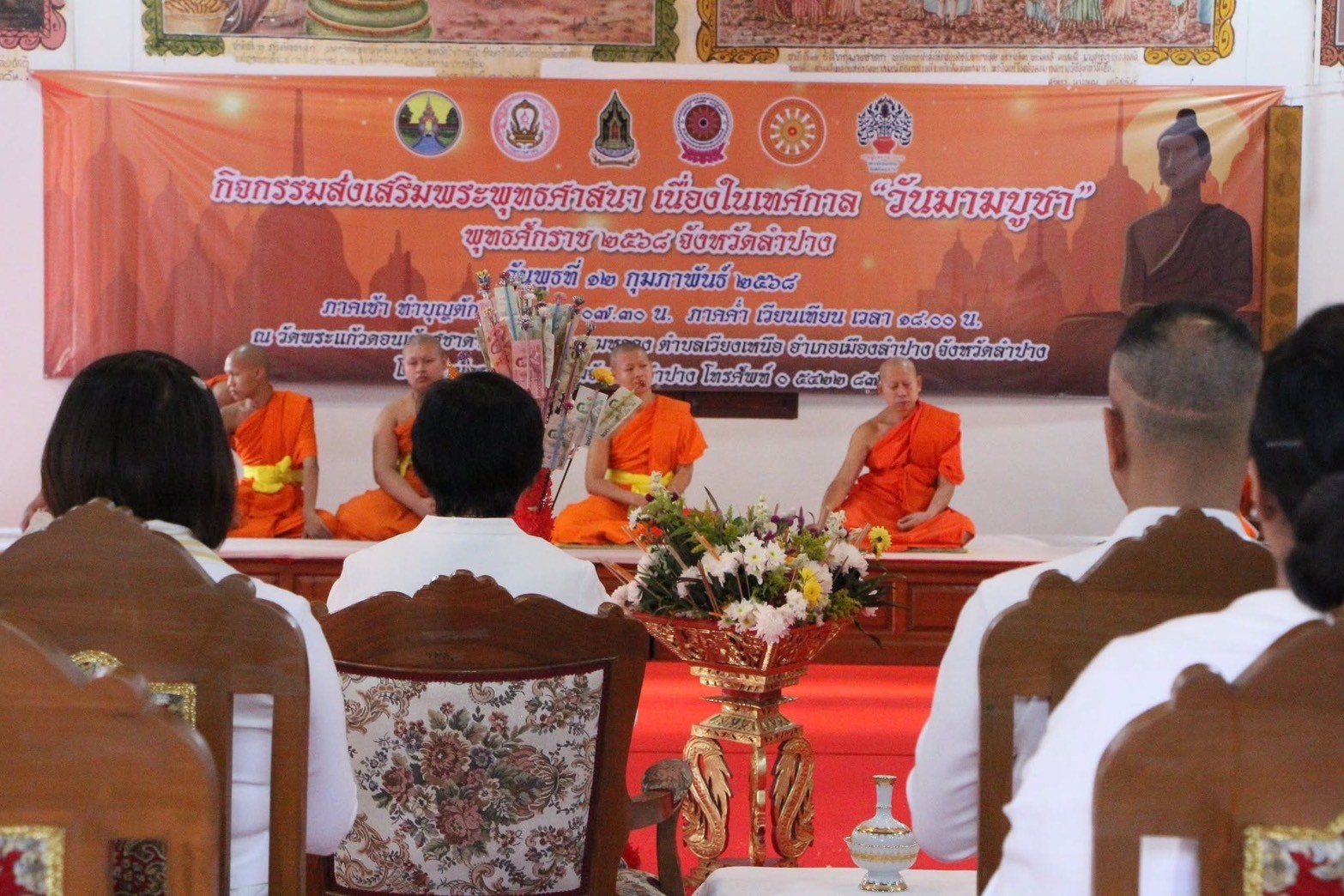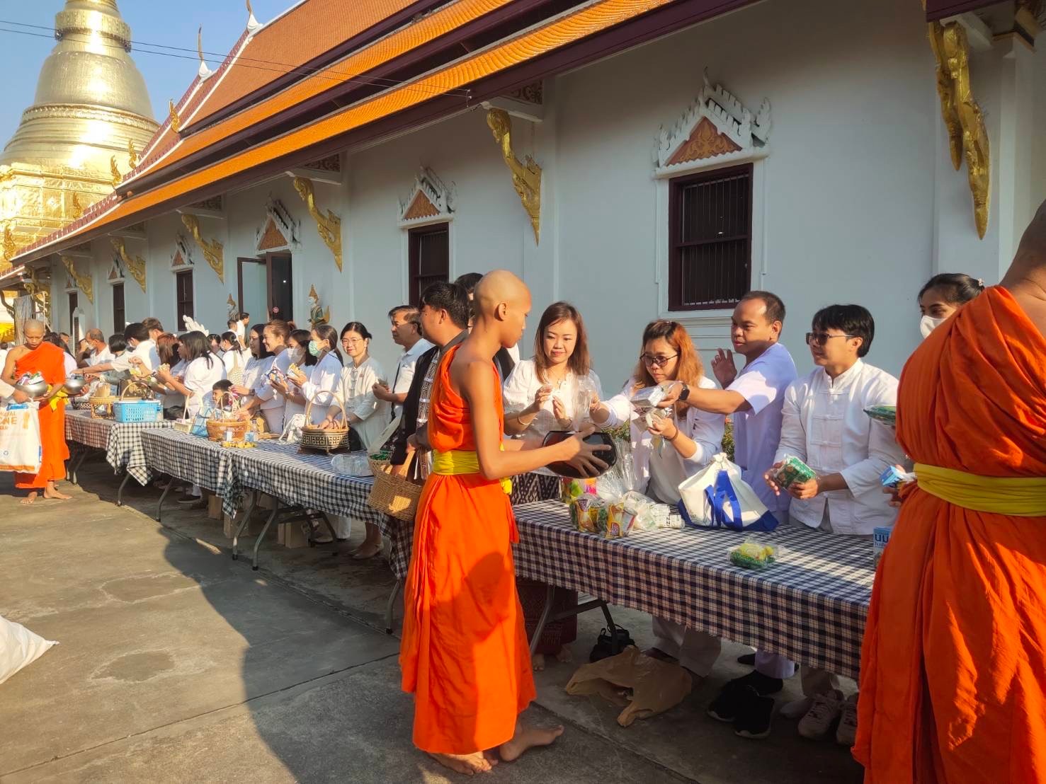 วันที่ 12 กุมภาพันธ์ 2568 เวลา 07.30 น.ผู้ช่วยศาสตราจารย์ ดร.กาญจน์สิริรักษา บุญเอี่ยม รองอธิการบดีมหาวิทยาลัยการกีฬาแห่งชาติ ประจำวิทยาเขตลำปาง มอบหมายให้นางสาวกันตพิชญ์ ศักดิ์สวัสดิ์ รองคณบดีคณะวิทยาศาสตร์การกีฬาและสุขภาพ นำอาจารย์และเจ้าหน้าที่เข้าร่วมกิจกรรมส่งเสริมพระพุทธศาสนา เนื่องในเทศกาลวันมาฆบูชา จังหวัดลำปาง พุทธศักราช 2568 พิธีแสดงตนเป็นพุทธมามกะ ณ วัดพระแก้วดอนเต้าสุชาดาราม พระอารามหลวง อำเภอเมืองลำปาง จังหวัดลำปาง