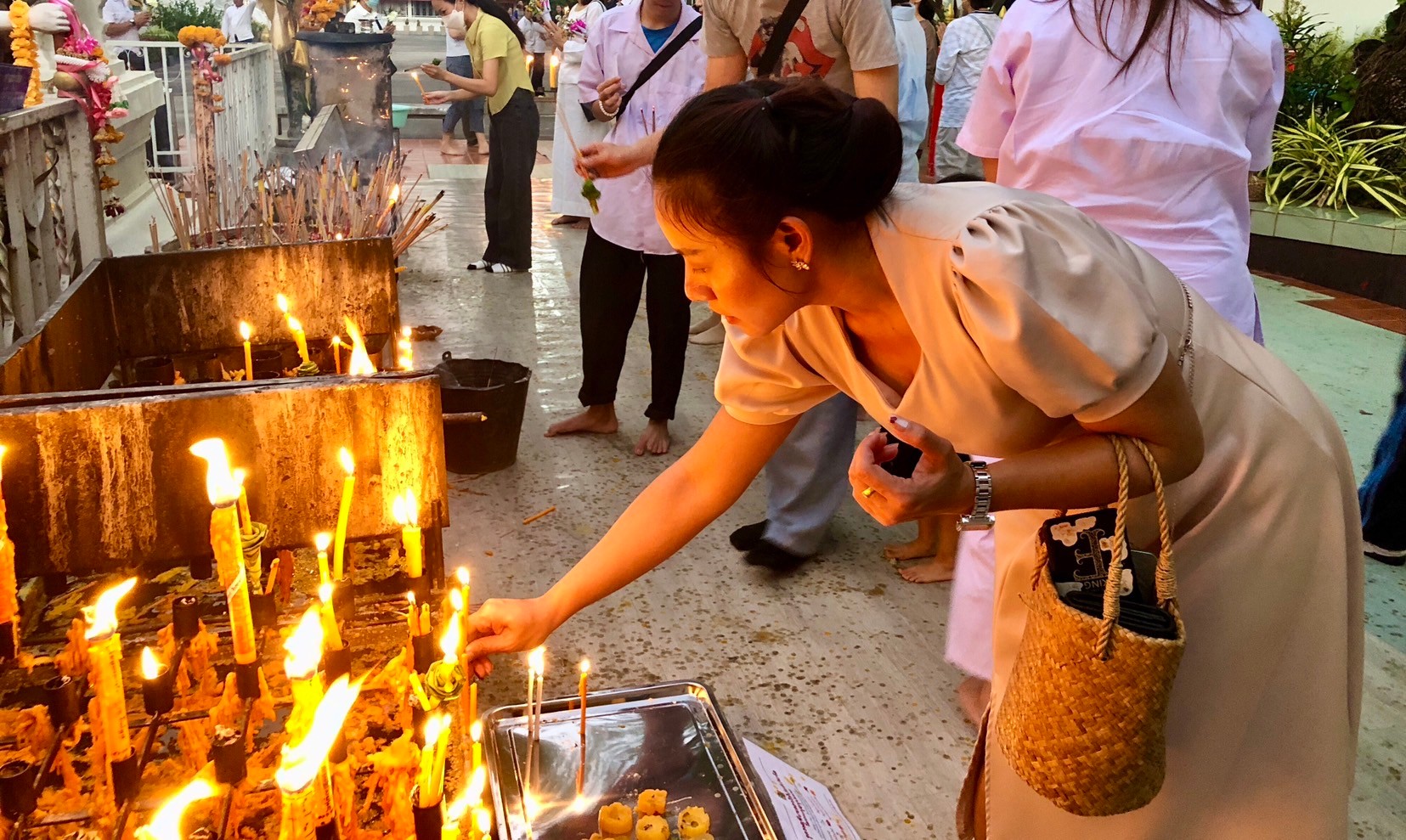 เข้าร่วมกิจกรรมส่งเสริมพระพุทธศาสนา พิธีแสดงตนเป็นพุทธมามกะ และพิธีเวียนเทียน