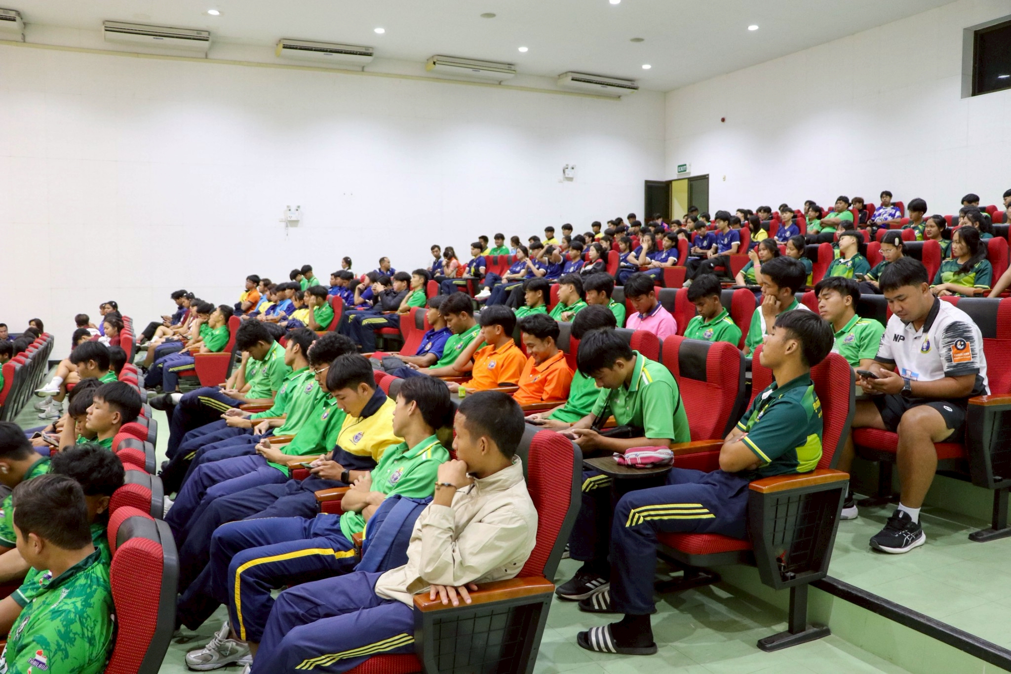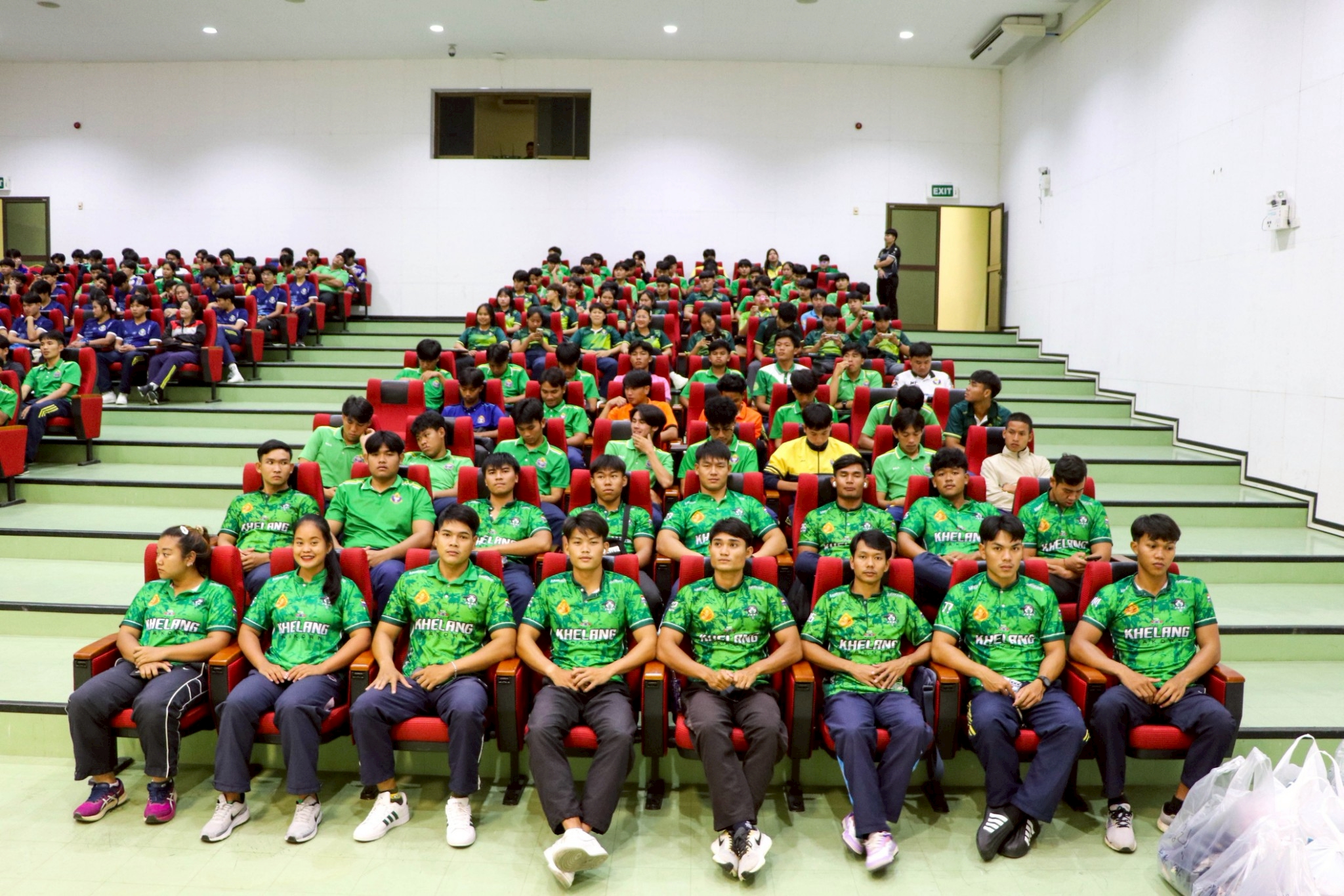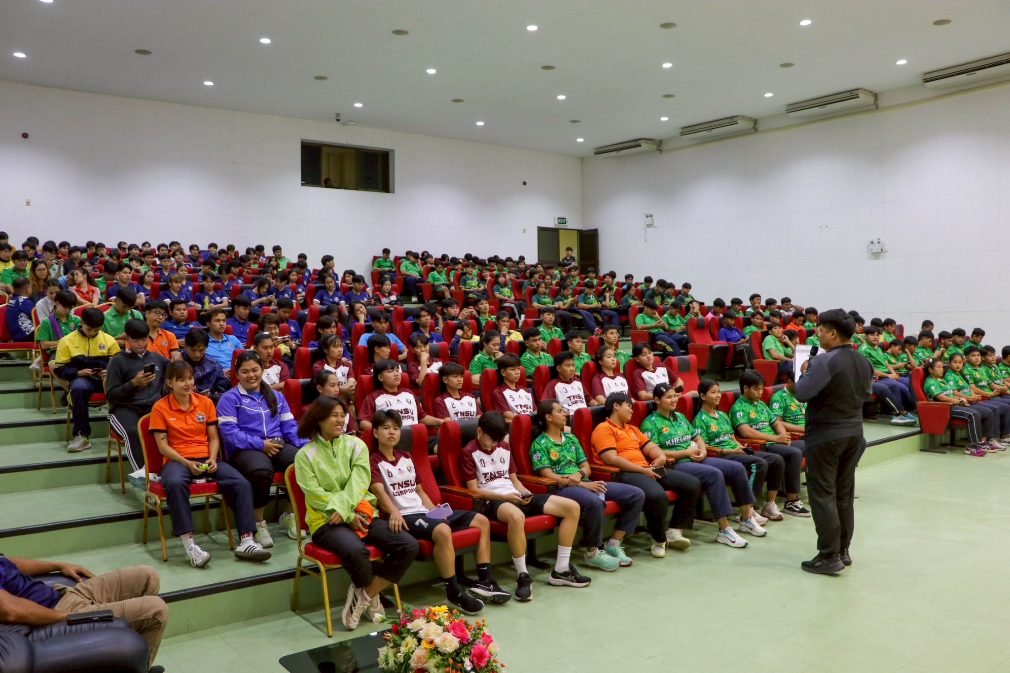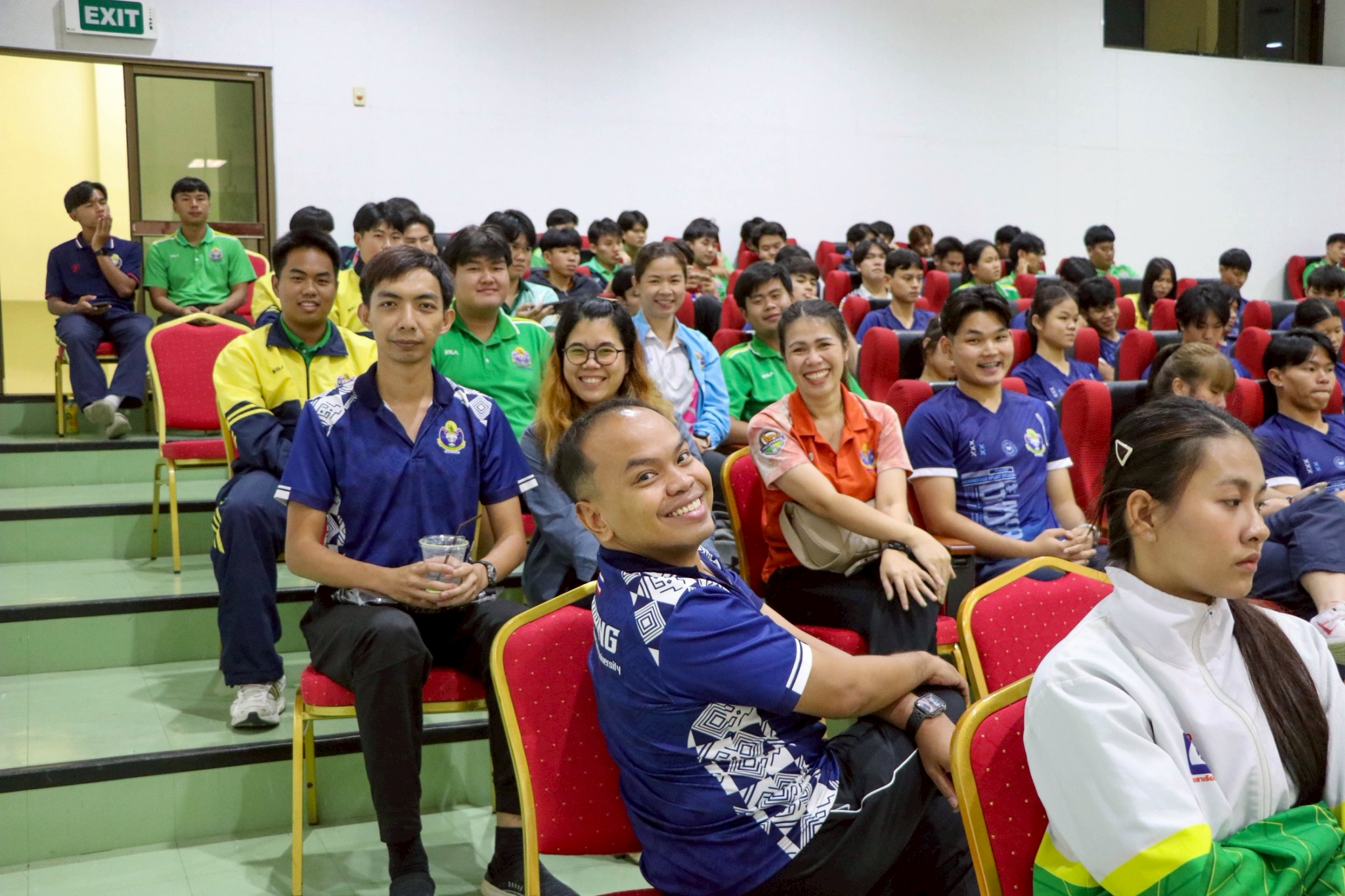 วันที่ 28 สิงหาคม 2568 ห้องเธียเตอร์ มหาวิทยาลัยการกีฬาแห่งชาติ วิทยาเขตลำปาง ได้จัดการประชุมเตรียมความพร้อมก่อนเข้าร่วมการแข่งขัน กีฬามหาวิทยาลัยการกีฬาแห่งชาติ ครั้งที่ 48 “พลศึกษาเกมส์” ซึ่งจะจัดขึ้นระหว่างวันที่ 1 – 10 กันยายน 2568 ณ มหาวิทยาลัยการกีฬาแห่งชาติ วิทยาเขตสุโขทัย โดยได้รับเกียรติจาก ผู้ช่วยศาสตราจารย์ ดร.กาญจน์สิริรักษา บุญเอี่ยม รองอธิการบดีมหาวิทยาลัยการกีฬาแห่งชาติ ประจำวิทยาเขตลำปาง ได้ให้โอวาทแก่คณะผู้ฝึกสอน และนักกีฬาที่จะเข้าร่วมการแข่งขัน เพื่อเป็นขวัญและกำลังใจ พร้อมเน้นย้ำให้นักกีฬาทุกคนมุ่งมั่น แสดงศักยภาพอย่างเต็มความสามารถ ควบคู่ไปกับการมีน้ำใจนักกีฬา รู้แพ้ รู้ชนะ รู้อภัย