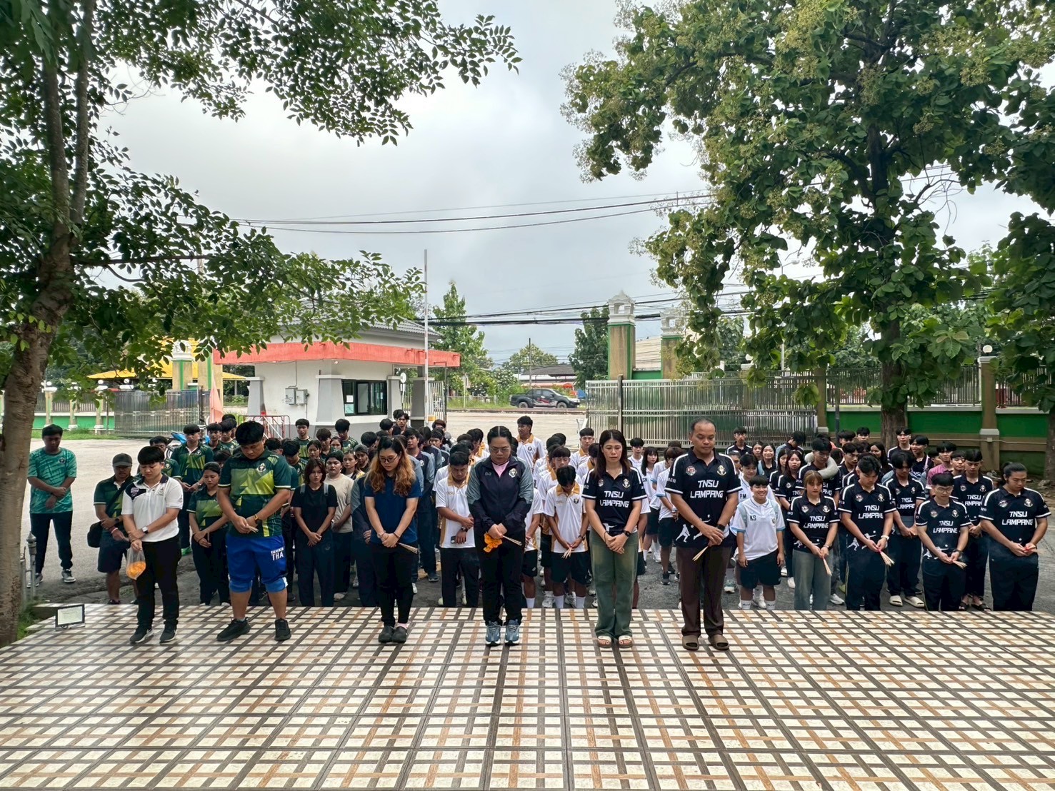 วันที่ 30 สิงหาคม 2568 ผู้ช่วยศาสตราจารย์ ดร.กาญจน์สิริรักษา บุญเอี่ยม รองอธิการบดีมหาวิทยาลัยการกีฬาแห่งชาติ ประจำวิทยาเขตลำปาง นำคณะผู้บริหาร คณาจารย์ เจ้าหน้าที่ทีมผู้ฝึกสอน และนักกีฬา ร่วมขอพรองค์พระพลบดีประจำมหาวิทยาลัยและสิ่งศักดิ์สิทธิ์ เพื่อความเป็นสิริมงคล ก่อนออกเดินทางเข้าร่วมการแข่งขันกีฬามหาวิทยาลัยการกีฬาแห่งชาติ ครั้งที่ 48 “พลศึกษาเกมส์” ภายหลังพิธี ได้ร่วมยืนสงบนิ่งไว้อาลัย เพื่อแสดงความเสียใจต่อการสูญเสียบุคลากรและนักกีฬาของมหาวิทยาลัยการกีฬาแห่งชาติ วิทยาเขตศรีสะเกษ จากอุบัติเหตุทางการเดินทาง พร้อมทั้งร่วมส่งกำลังใจไปยังครอบครัว ผู้ปกครอง และเพื่อนร่วมทีมของผู้เสียชีวิตในช่วงเวลาแห่งความโศกเศร้านี้