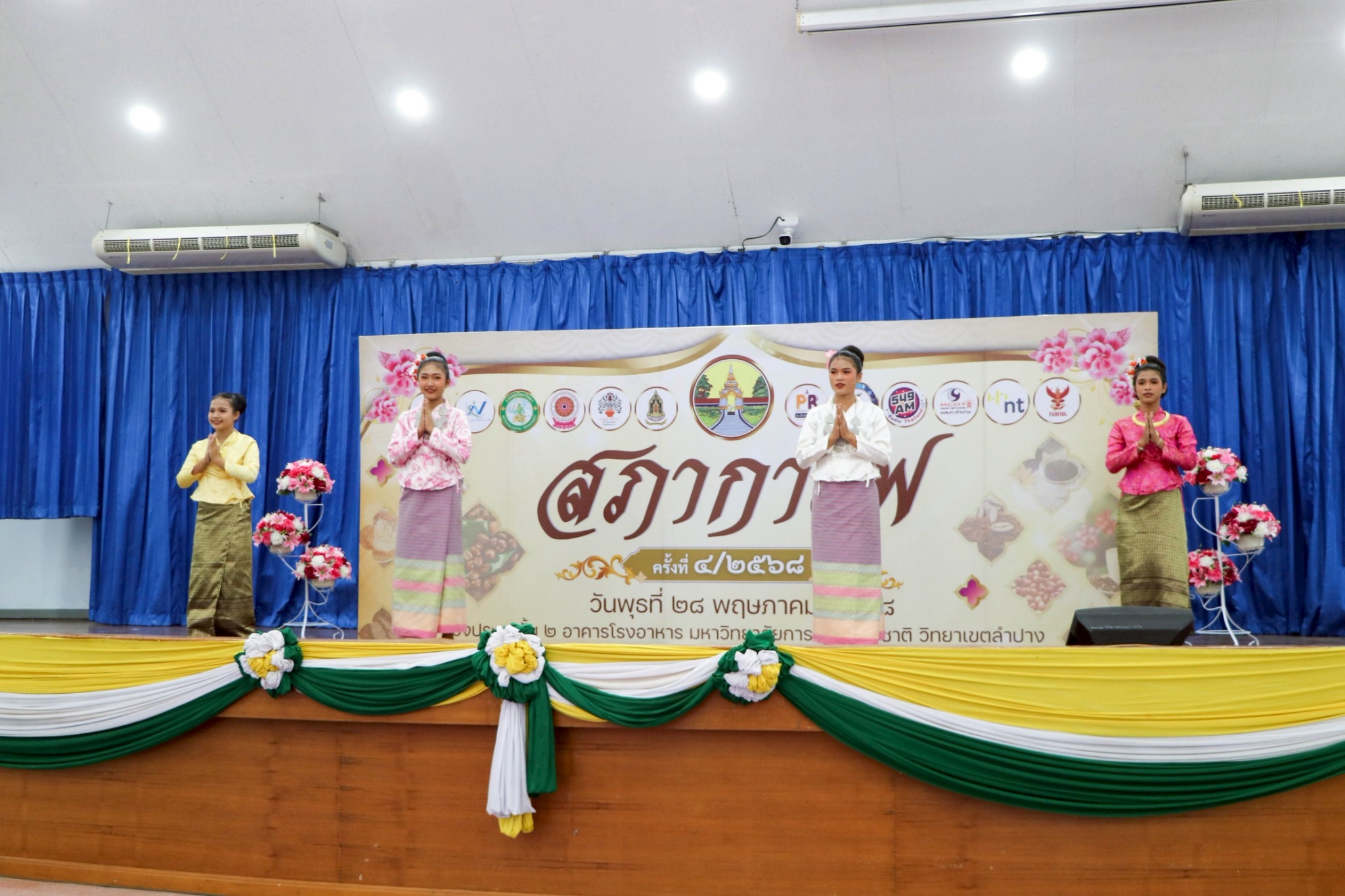 วันที่ (28 พฤษภาคม 2568) ผู้ช่วยศาสตราจารย์ ดร.กาญจน์สิริรักษา บุญเอี่ยม รองอธิการบดีมหาวิทยาลัยการกีฬาแห่งชาติ วิทยาเขตลำปาง พร้อมด้วย ผู้ช่วยศาสตราจารย์ ว่าที่ ร.ต. ยุทธการ ขาววรรณา ผู้ช่วยอธิการบดีฝ่ายบริหาร และนางสาวสุขุมาล ทองดี รองคณบดีคณะศิลปศาสตร์ เข้าร่วมการประชุมสภากาแฟ ครั้งที่ 4/2568 ณ หอประชุม มหาวิทยาลัยการกีฬาแห่งชาติ วิทยาเขตลำปาง การประชุมครั้งนี้ได้รับเกียรติจาก นายชุติเดช มีจันทร์ ผู้ว่าราชการจังหวัดลำปาง เป็นประธานกล่าวเปิดงาน โดยมีนางสาวนิติยา พงษ์พานิช และนายกฤษณะ พินิจ รองผู้ว่าราชการจังหวัดลำปาง พร้อมผู้บริหารส่วนราชการ รัฐวิสาหกิจ ภาคเอกชน และภาคประชาชนเข้าร่วม เพื่อพบปะ แลกเปลี่ยนเรียนรู้ข้อราชการ เผยแพร่ข้อมูลข่าวสาร และประชาสัมพันธ์กิจกรรมของหน่วยงานต่าง ๆ พร้อมทั้งประสานงานและเสริมสร้างความร่วมมือระหว่างหน่วยงานในจังหวัดลำปาง ในครั้งต่อไป