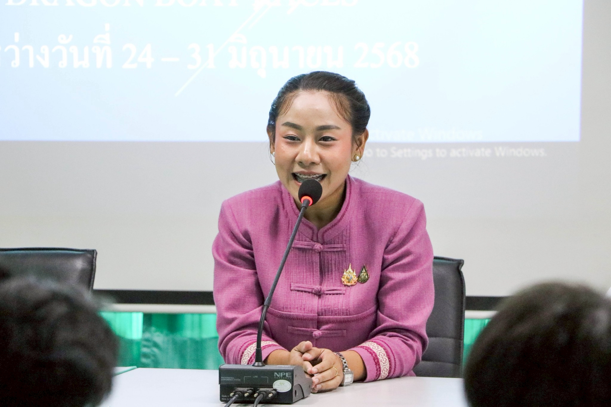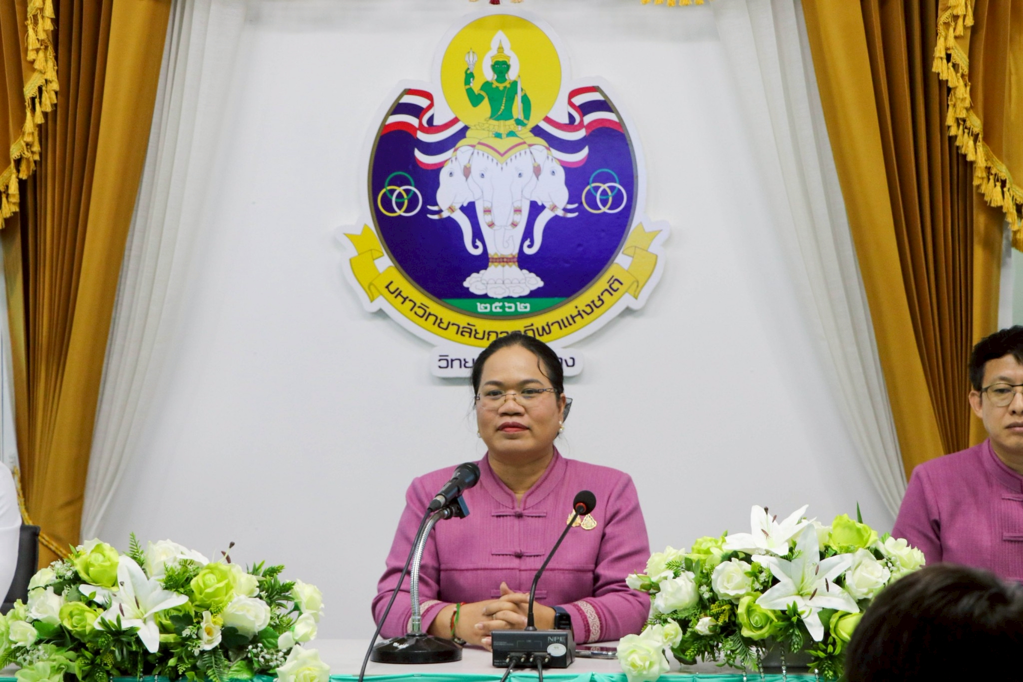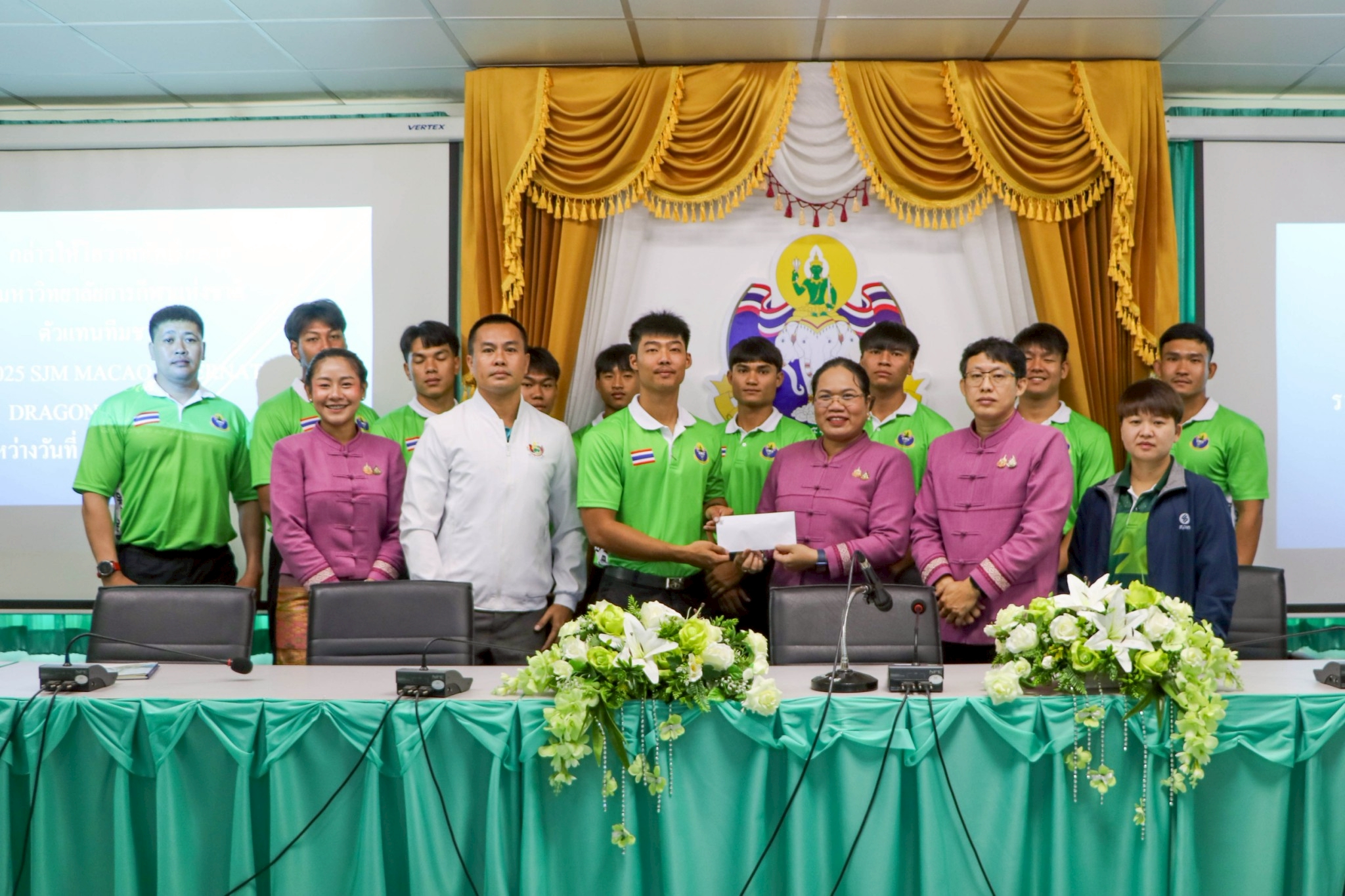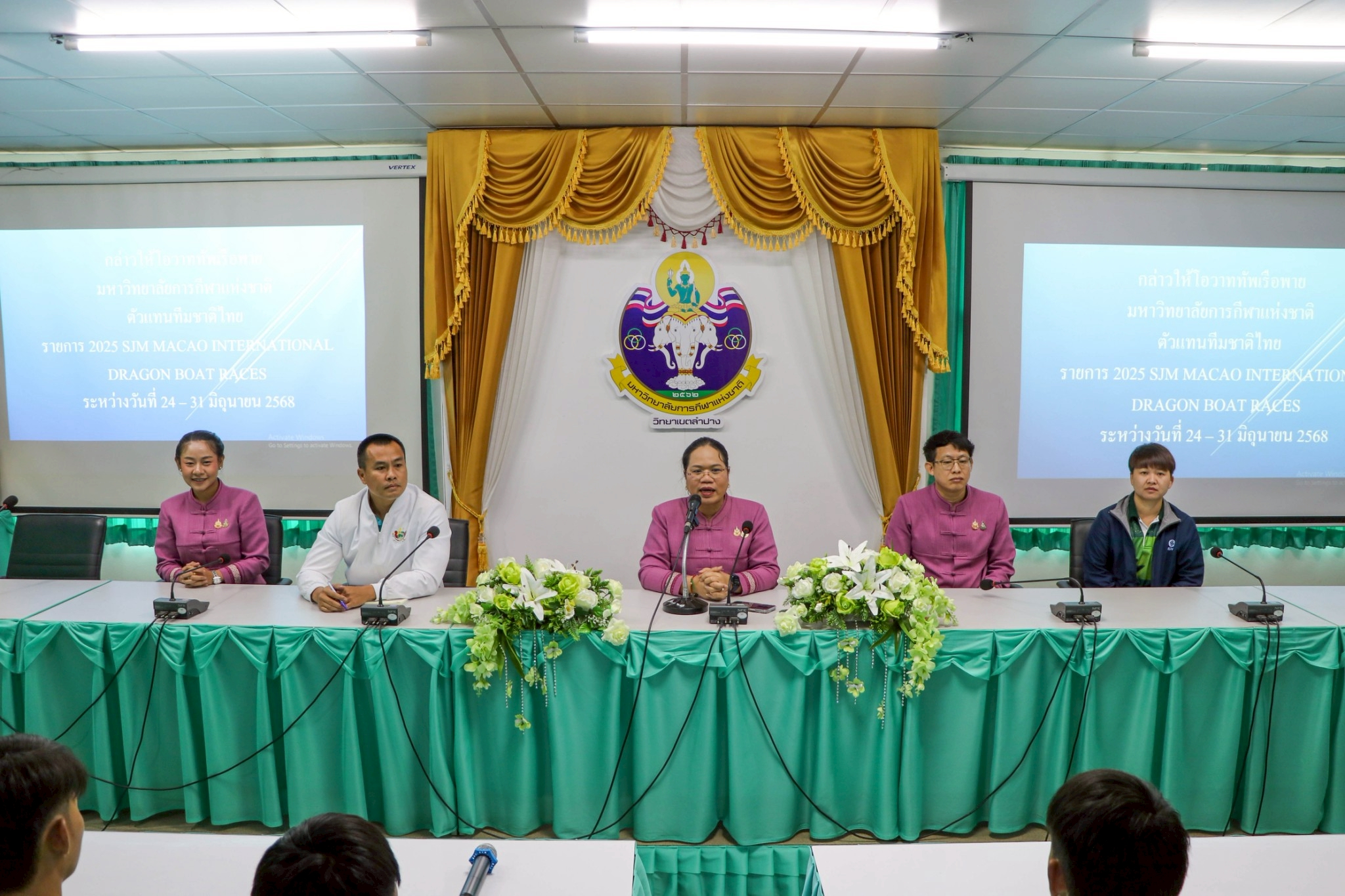 วันที่ 28 พฤษภาคม 2568 เวลา 10.00 น. ณ ห้องประชุม 2 อาคารวิทยบริการ ผู้ช่วยศาสตราจารย์ ดร.กาญจน์สิริรักษา บุญเอี่ยม รองอธิการบดีมหาวิทยาลัยการกีฬาแห่งชาติ วิทยาเขตลำปาง พร้อมด้วย ผู้ช่วยศาสตราจารย์ ว่าที่ ร.ต. ยุทธการ ขาววรรณา ผู้ช่วยอธิการบดีฝ่ายบริหาร ,นายยุทธพงษ์ เรืองจันทร์ ผู้ช่วยอธิการบดีฝ่ายกิจการนักศึกษาและกิจการพิเศษ นางสาวสุขุมาล ทองดี รองคณบดีคณะศิลปศาสตร์ ,นางสาวกัลยา พิพัฒน์ไพศาลกูล หัวหน้าสำนักกีฬา ได้ให้โอวาทแก่นักกีฬาเรือพายทีมชาติไทย ก่อนเดินทางเข้าร่วมแข่งขันในรายการ 2025 SJM Macao International Dragon Boat Races ระหว่างวันที่ 30 พฤษภาคม 2568 – 1 มิถุนายน 2568 ณ เขตบริหารพิเศษมาเก๊า ประเทศจีน