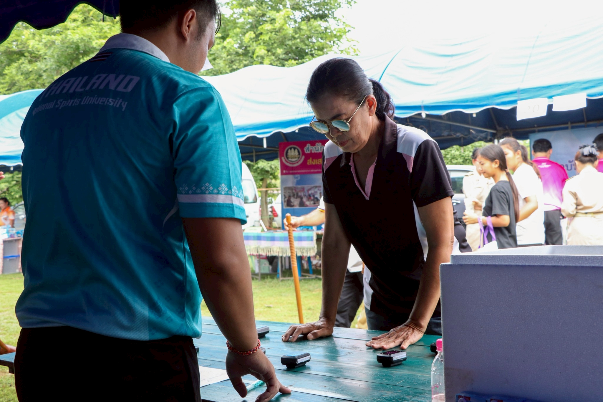 เมื่อวันที่ 19 มิถุนายน 2568 ผู้ช่วยศาสตราจารย์ ดร.กาญจน์สิริรักษา บุญเอี่ยม รองอธิการบดีมหาวิทยาลัยการกีฬาแห่งชาติ วิทยาเขตลำปาง นำคณะผู้บริหาร คณาจารย์ และเจ้าหน้าที่ เข้าร่วมโครงการ "จังหวัดลำปางเคลื่อนที่" ประจำปีงบประมาณ พ.ศ. 2568 ณ อำเภอเถิน จังหวัดลำปาง เพื่อประชาสัมพันธ์มหาวิทยาลัย พร้อมทั้งให้บริการตรวจวัดองค์ประกอบร่างกายแก่ประชาชนในพื้นที่ โดยกิจกรรมดังกล่าวมีเป้าหมายในการส่งเสริมสุขภาพและคุณภาพชีวิตให้แก่ชุมชน